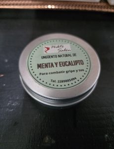 Hecho a base de cera de abeja, aceite de coco y almendras, cera de soya, eceites esenciales de lavanda, menta piperita, eucalipto, romero, árbol del té, alcanfor, cristales de mentol, extracto de vapo rub y orégano.